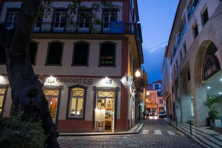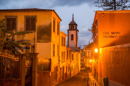 the old town of zona Velha in the old city of Funchal at night on the Island Madeira of Portugal. Portugal, Madeira, April 2018