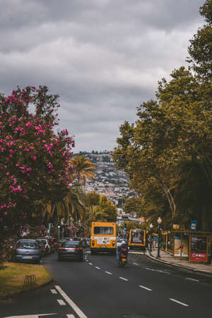 On the road in the romantic port city of Funchal on the Azores island of Madeira
