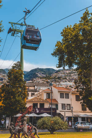 MADEIRA, PORTUGAL - Jan 01, 2020: Madeira Island view of people in the telepheric