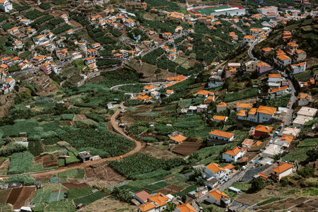Beautiful landscape scenery of Madeira Island - View of small village Arco de Sao Jorge near Boaventura on the north side of Madeira, Portugal