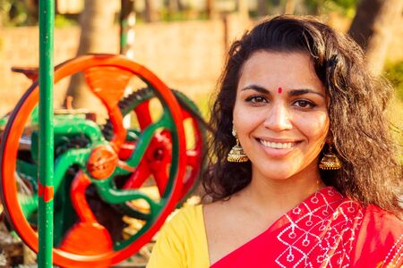 Portrait of a beautiful Indian woman wearing saree and smiling.