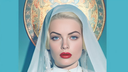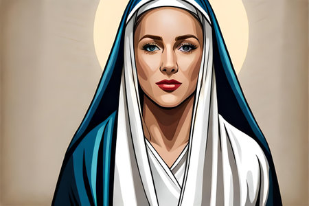 digital painting Illustration portrait of the holy virgin Mary with a veil, aureole and a christian cross