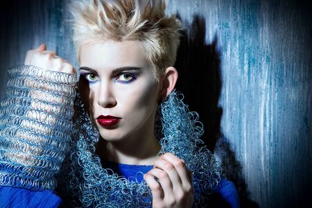 Avant-garde fashion clothing collection. Punk Style. Futurism. Studio shot.