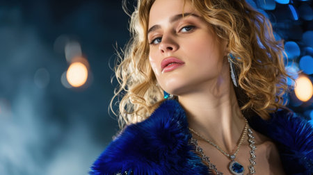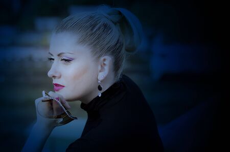 Portrait of beautiful glamorous woman on moon light background