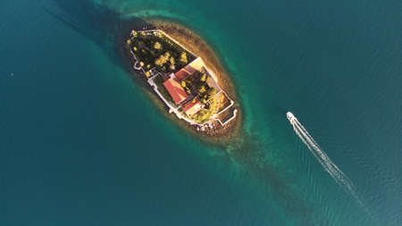 Aerial view of the Church of St. George on the island in Montenegro.