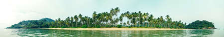Tropical beach panorama overlooking a sandy island with palm trees, Koh Chang, Thailand. Banner Nobody on the beach
