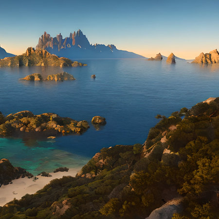 Beautiful landscape of the island in the sea. 3d render