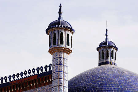 The top of the minaret of the mosque in Tashkent Minor against the blue sky, Uzbekistan.