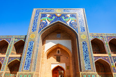 Old and colorful facade of old madrasah in Bukhara, Uzbekistan