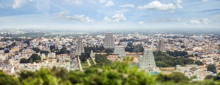 Overall view of the Annamalaiyar temple from the Arunchalahill sacred mountain hiking on a summer day, Tiruvannamalai, Tamil Nadu, India 2019