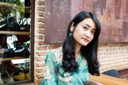 Beautiful Asian woman sitting in the cafe.