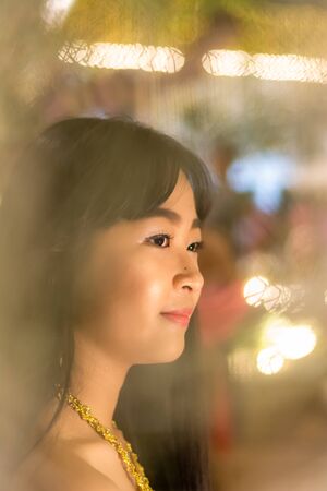 Portrait of thai china adult beautiful girl relax time, in Vintage Style