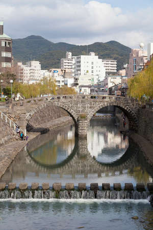 GUNMA, JAPAN - NOVEMBER 04, 2019: Beautiful old steel bridge in Maebashi. Maebashi is a city in the Kanto region of central Japan.