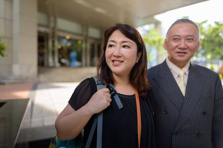 Portrait of happy Japanese businesswoman smiling with arms crossed