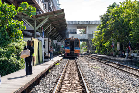 Bangkok, Thailand - 26 Sep 2020, The Environment of Ladkrabang Train Station Platform with the local people around, They waited the train for transportation, Bangkok, Thailand.