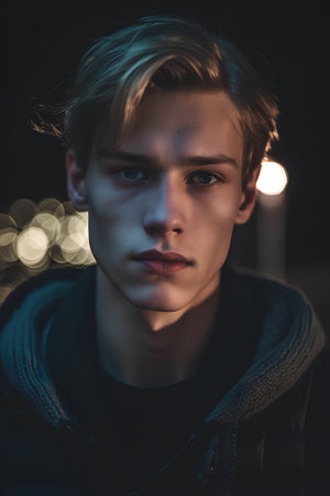 This evocative portrait captures a young man lost in thought, illuminated by soft light, creating an atmosphere of introspection and emotional depth.