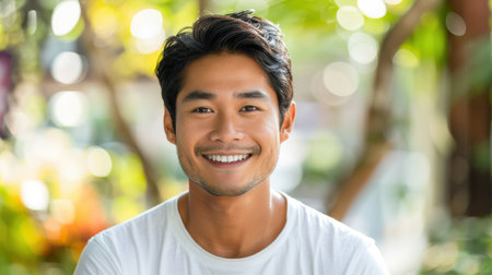 Portrait of a young asian man smiling at the camera.