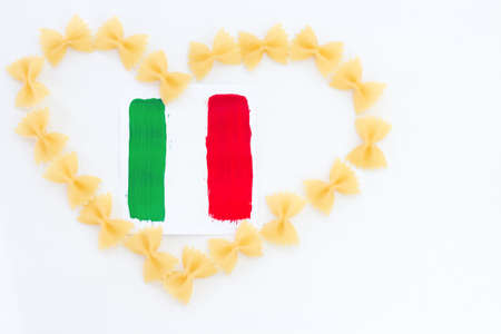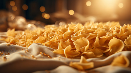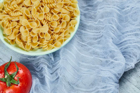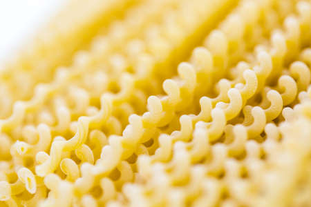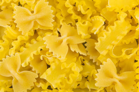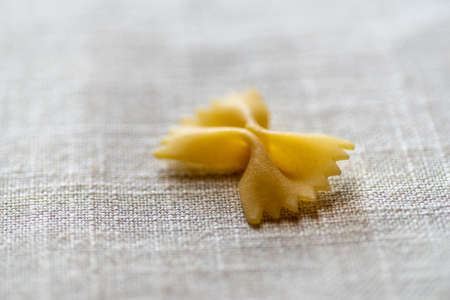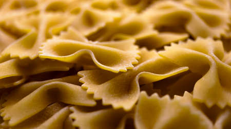 Pasta bows from durum wheat. Food background close up. Uncooked Italian pasta