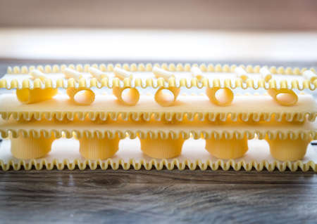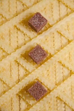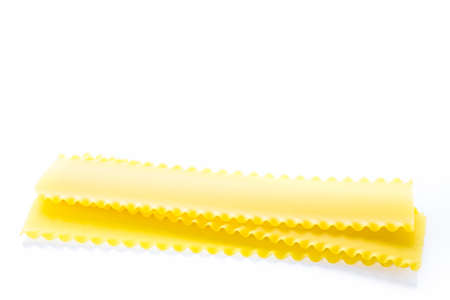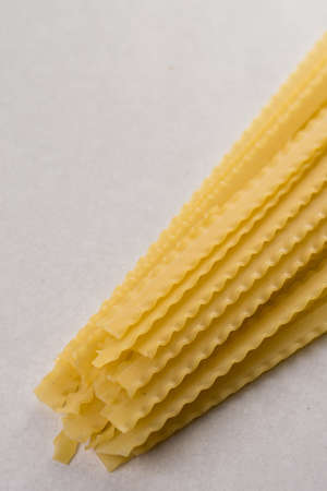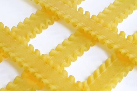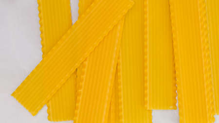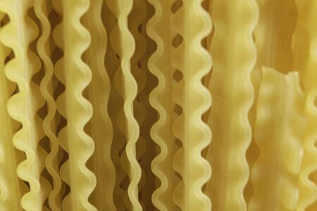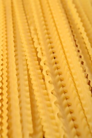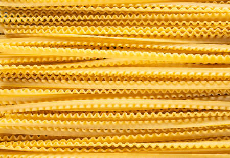 Organic dried durum wheat semolina lasagne background texture with a decorative parallel pattern formed by the crimped edges of the sheets