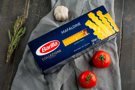 Russia, Kazan, 06 April 2021: BARILLA products. Italian pasta Mafaldine