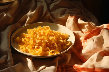 Pasta Italian dish prepared from flour and water that cooked in various shapes and served with sauces. popular, versatility and ability to be combined with variety of ingredients