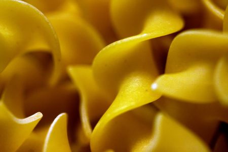 Macaroni on an orange background. The frame is bright. Flour products. The lasagna sheets.