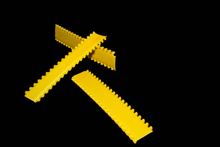 Pasta on a black shiny background. Lasagna sheets on a dark background. Food frame.