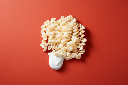 Farfalle pasta, top view, light gray pastel background, copy space. Food concept. Generative AI.