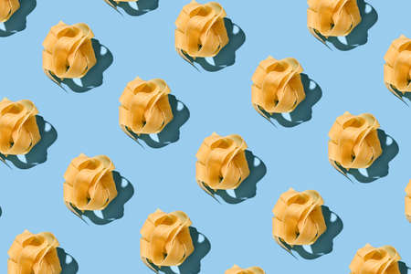 Raw pasta pappardelle repeating seamless pattern on blue backdrop