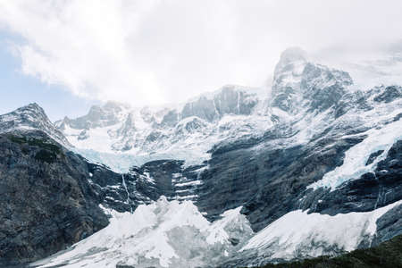 Beautiful landscape of the snowy peaks of mountains, Torres del Paine National Park, Chile