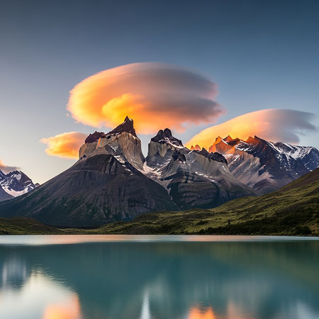Mountain landscape at sunset. Torres del Paine National Park, Chile