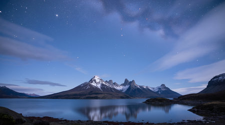 Matterhorn and lake at night, Torres del Paine National Park, Chile