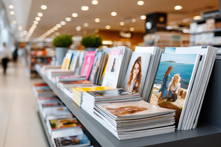 Magazines displaying on shelves in a retail bookstore or newsstand
