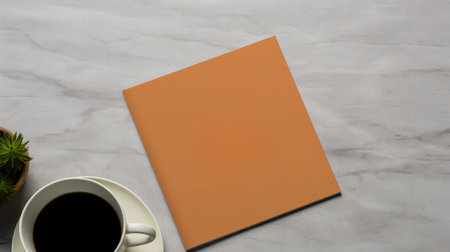 Mockup of a white sheet of paper and a cup of coffee on a brown background