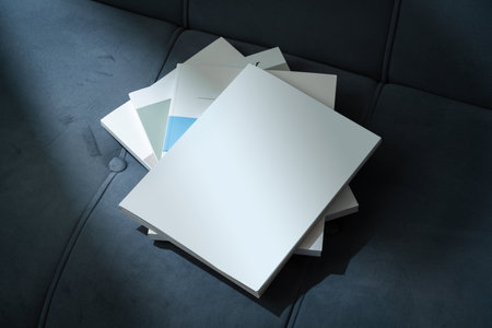 Premium D rendering showcasing blank A and A magazine brochure mockup in pristine white design. Ideal for showcasing branding concepts, professional layouts, or marketing materials with a clean