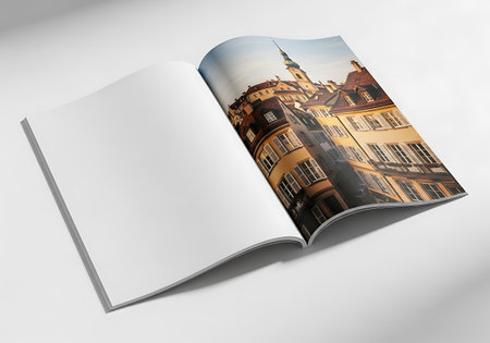 Clean and minimalist mockup of a blank magazine spread. perfect for showcasing your design. branding. or typography.