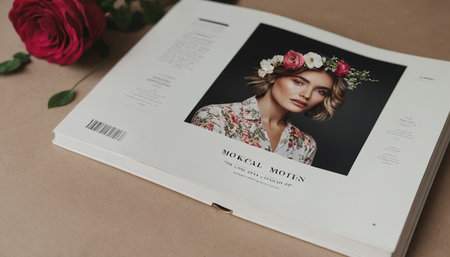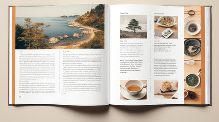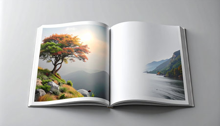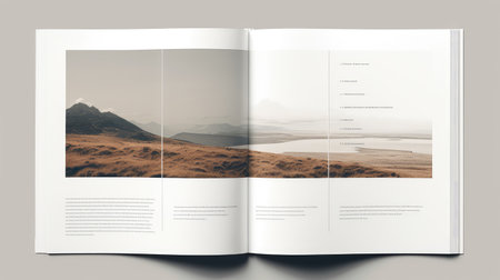 A clean and modern mockup of an open magazine. perfect for showcasing your designs. branding. or editorial content. Featuring a minimalist layout and a variety of natural elements.