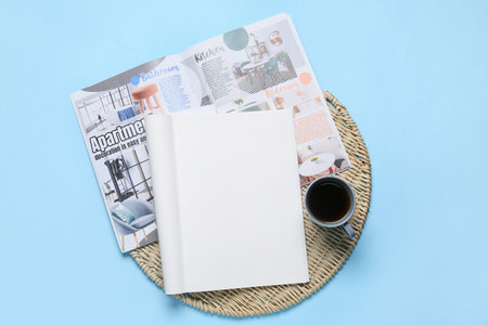 Blank magazine with moodboard on light background