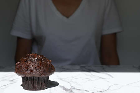 Chocolate muffins as sweet dessert, homemade cakes recipe, food and baking concept