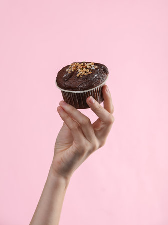 AI Generated. Delicious Pink Frosted Chocolate Cupcake with Sprinkles