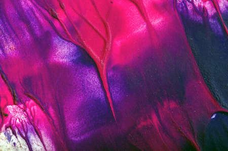 Liquid paint art. Macro ink background. Purple pink colors mix