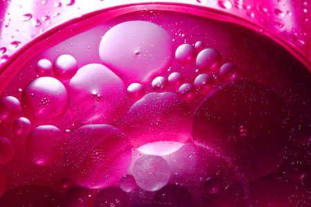 Abstract pink shimmer background.Makeup concept.Beautiful stains of liquid nail laquers.Fluid art, pour painting technique.Good as digital decor, copy space.Horizontal photography.Good as digital decor.