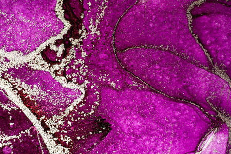 Abstract pink shiny color fluid background, hand drawn alcohol painting with golden streaks, liquid ink technique texture for backdrop design