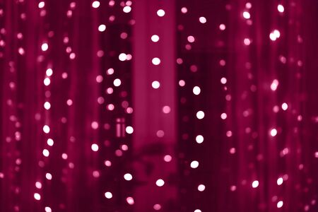 Defocused Christmas Bokeh fairy lights background. Christmas backdrop. Toned pink.