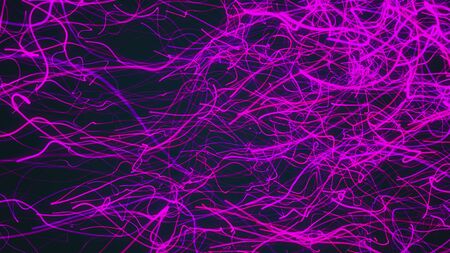 Many chaotic color neon flowing strings. Computer generated abstract background, 3d render