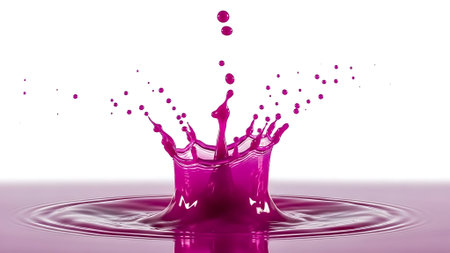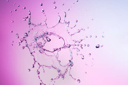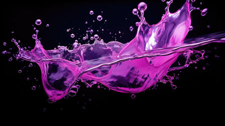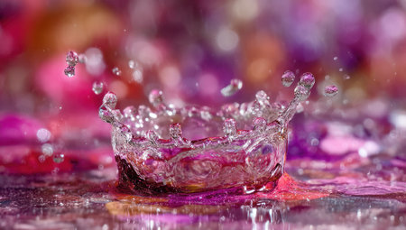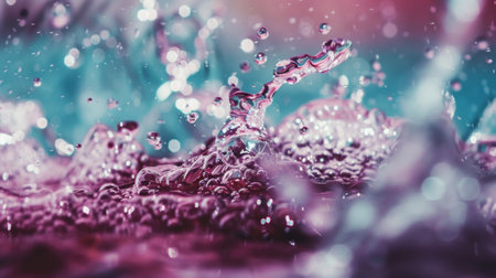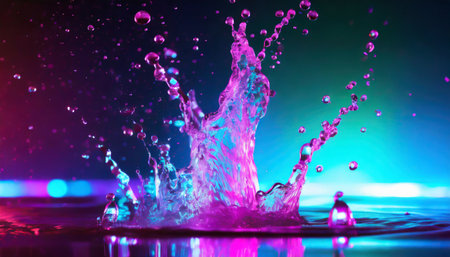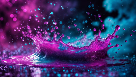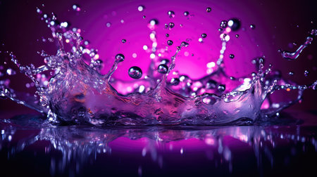 A dynamic and vivid water splash with purple and pink hues captured in motion, creating a visually stunning and energetic effect.