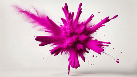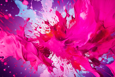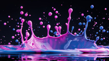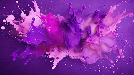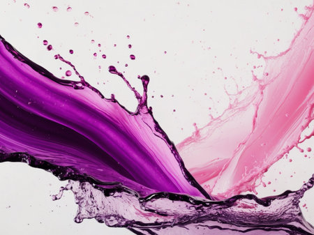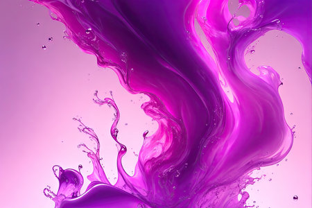 Dramatic splash of pink and purple paint captured in mid-air, highlighting the dynamic and fluid nature of paint. Perfect for artistic, creative, and vibrant themes.