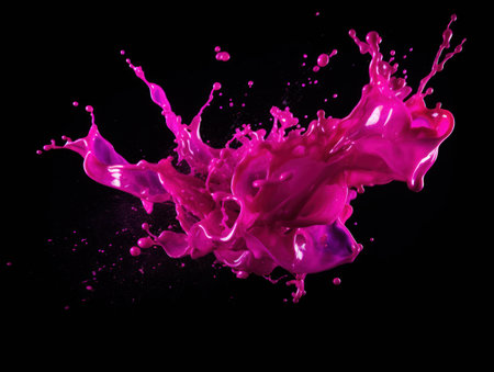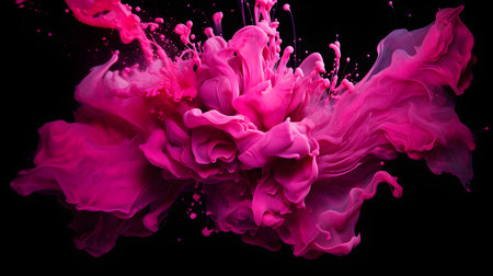Fuchsia Color Splash on a black Background. Artistic Color Explosion