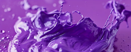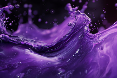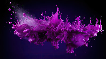 Dynamic purple paint splash on black background, liquid artistry and color motion