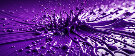 Close-up of a dynamic water splash in rich purple tones, with frozen mid-air droplets, creating an energetic and vibrant visual.